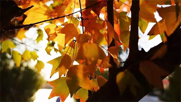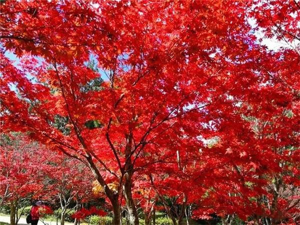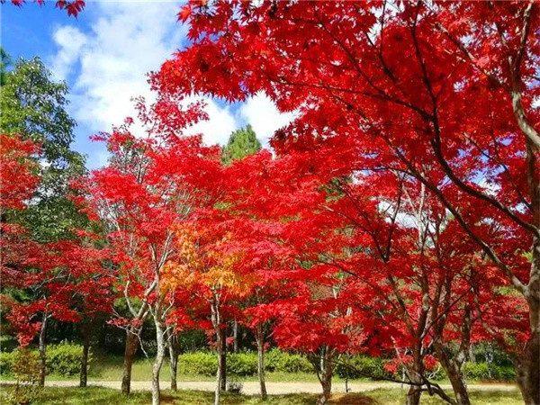 在冬日和煦的陽(yáng)光下,紅葉色彩更加濃艷,微風(fēng)拂過的瞬間仿若一片燃燒的火海,美不勝收。