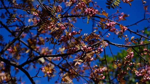 陽(yáng)光+藍(lán)天+金黃樹(shù)葉”的組合