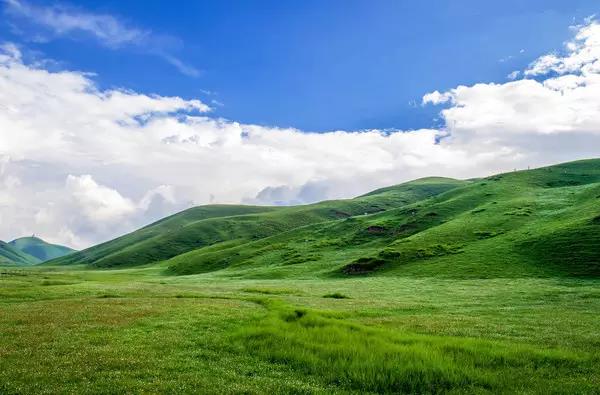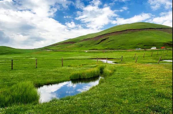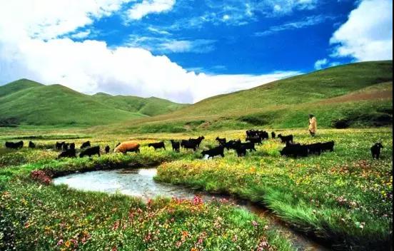 藍(lán)天白云一望無(wú)際的草甸,風(fēng)吹草地現(xiàn)牛羊。