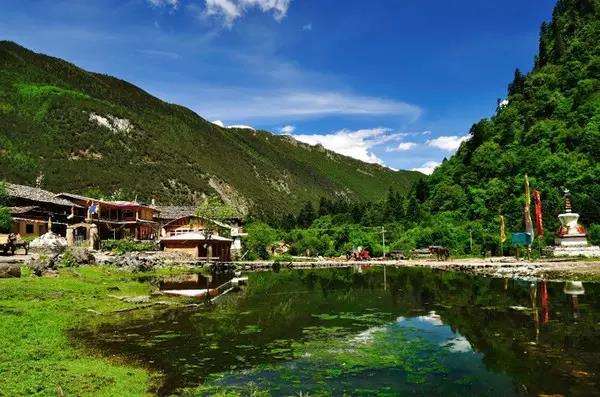 里格村坐落于格姆女神山下,房舍分布在湖灣和半島上,湖灣顯得村子格外靜謐。