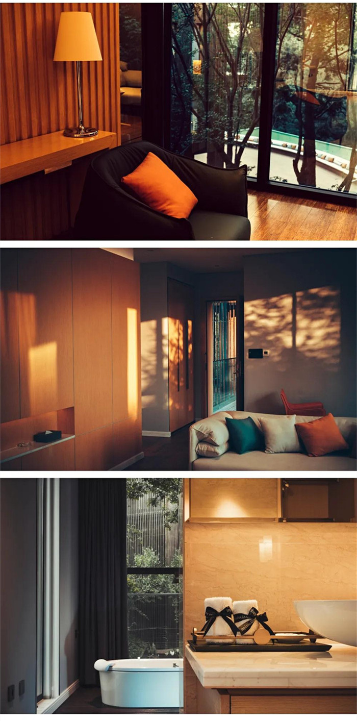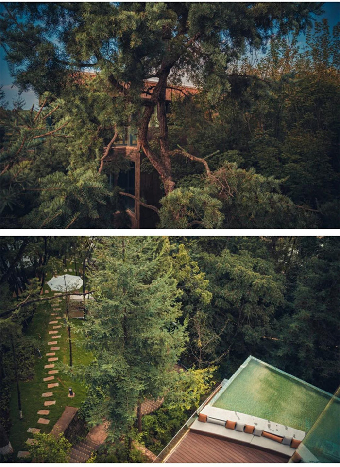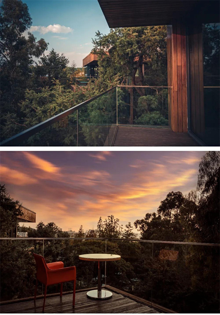 光陰流轉,經典永恒。它獲得包括RIBA英國皇家建筑師協會國際建筑獎、WAN世界建筑新聞網酒店建筑年度總冠軍、DFAA亞洲最具影響力設計獎等十余項世界獎項。四座高低錯落的L形建筑依山勢起伏而建,外立面是漂洋過海而來的芬蘭杉木,曲折的步道和景觀廊橋連結木質的建筑,恰到好處的中西合璧,即有“生態現代主義”的理念,也有“依山傍水房數間,行也安然,坐也安然”的意境。得天獨厚,獨此一家.酒店位于昆明市郊的鳳鳴山麓,與昆明世界園藝博覽園僅一門之隔,周邊有5A級景區世界園藝博覽園、金殿國家森林公園、金殿公園、云南野生動物園,國家植物博物館等五大公園環繞。距昆明市中心僅4公里,距離長水國際機場26公里,只需一瞬間就從人間煙火跨入一隅隱秘之境。酒店建立伊始,就以“創意綠色”為設計理念,占地面積7123 ㎡,綠地率 55%,建筑面積4238 ㎡,客房僅十六間,可遠眺城市、可觀半山水景、可賞四季顏色、可享森林秘境。