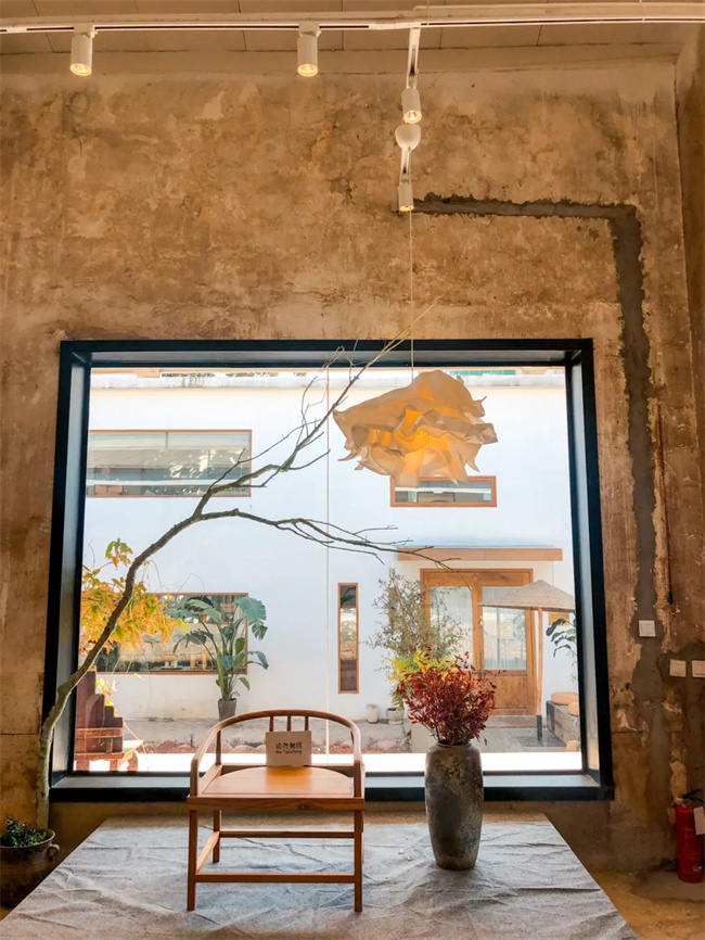 整個(gè)展廳的面積非常廣闊,內(nèi)部區(qū)域的協(xié)調(diào)和劃分也很講究藝術(shù)性。枯枝、陶罐、木椅,幾樣?xùn)|西隨意搭配起來,便自成一方景色。