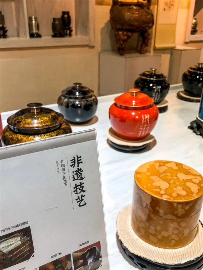 這里的金屬原料以錫為主,它們來自世界錫都——個(gè)舊,并且內(nèi)部所有金屬制品皆由大師精心制而成。車間內(nèi)的金屬制品很多,不同種類、不同樣式、不同工藝,應(yīng)有盡有。可以說這里簡(jiǎn)直就是一個(gè)金屬愛好者的天堂。