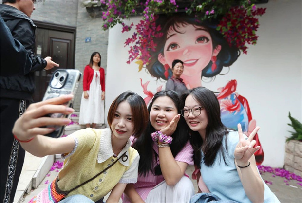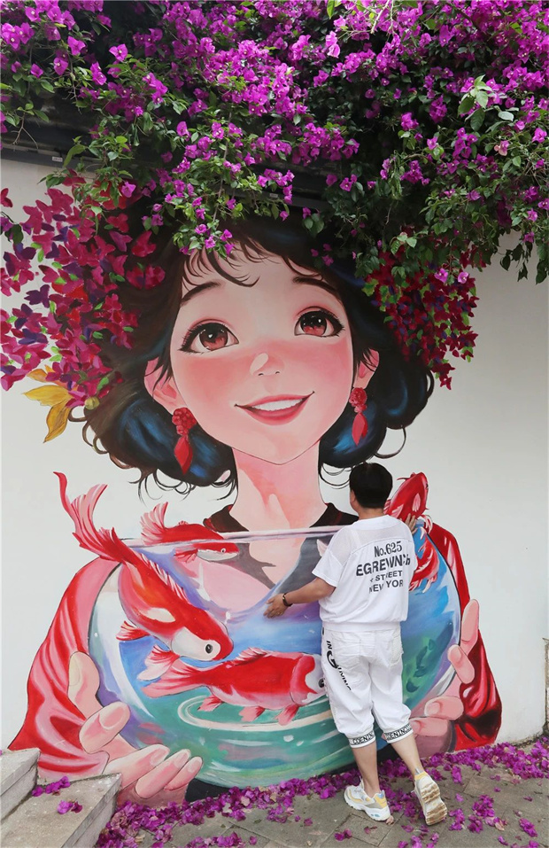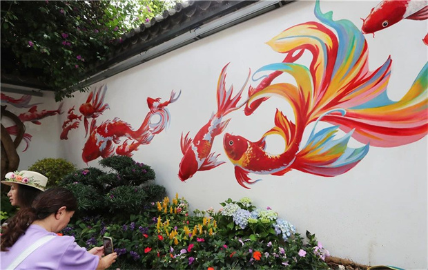 “簪花少女”和錦鯉圖景