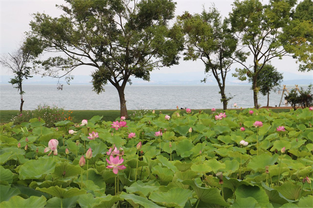曾溢出?;òαⅲ馍衔⑽⒕`開一點粉白,像是抿著嘴笑的少女。此時荷塘最是清新,連空氣都浸著淡淡的荷香。