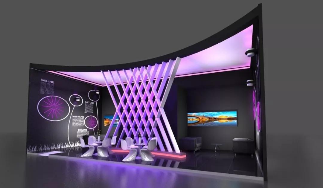 不同空間造型形式在整體形態(tài)的形式意味表達(dá)上是不一樣的。水平序列式組織展位空間,陳列展品同參觀者的“運(yùn)動”方向相吻合,強(qiáng)調(diào)展位沿水平線延展,給人以自然、舒適的視覺感應(yīng)。豎向式空間造型常常被運(yùn)用于進(jìn)深大和層高高的空間里,可隨著景深的變化和垂直方向的高低得到不同的視覺心理感受。三角體空間造型三條邊長度尺寸的變化,會使人產(chǎn)生不同的心理感受。圓形、環(huán)形空間造型在空間表現(xiàn)形式上也頗為豐富,可以根據(jù)需要進(jìn)行變形處理,創(chuàng)造出新穎、動感、柔和、親切的展位空間同時也能營造出新奇、科幻般的氣氛。曲線式空間造型具有運(yùn)動、變化的特征,給人以柔和、輕盈、優(yōu)美的感受。平緩的曲線給人親和、舒緩的心理感受;不規(guī)則起伏的曲線給人流動、動蕩感受等;而有規(guī)律變化的曲線,則給人一種柔美的節(jié)奏感和韻律美。當(dāng)然這些空間造型形式并不是孤立存在的,在整體形態(tài)的設(shè)計上是可以組合和穿插的。?