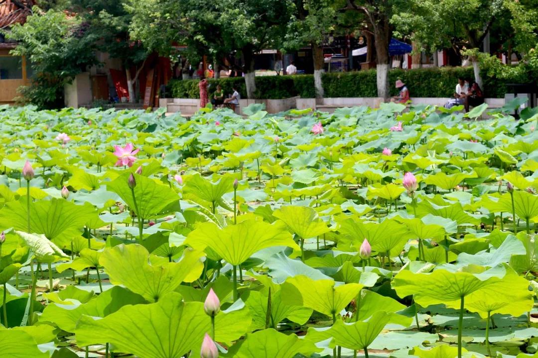 從大門進去,一條石板路蔓延至遠方。道路兩旁的池塘里種滿了荷花,而岸邊也早已站滿了人。