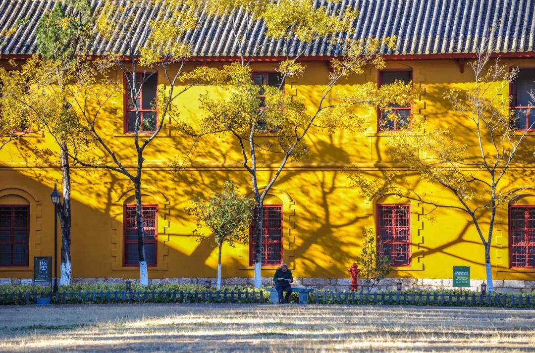 這座融合了各種風格的姜黃色老建筑,在昆明暖陽的照耀下更具浪漫和典雅,隨手一拍滿滿都是復古風。
