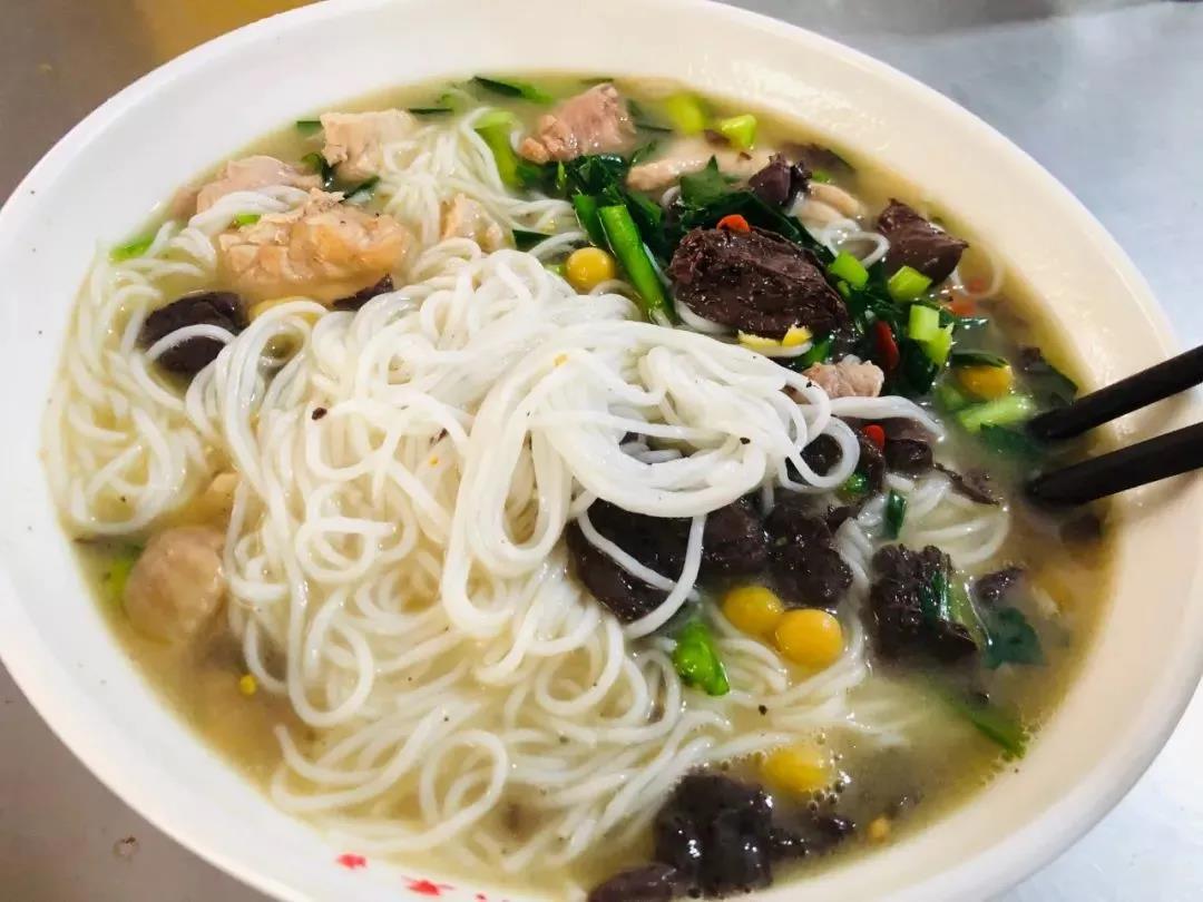 店內(nèi)面積不大,窗口狹小,但是永遠不缺排隊的人。即使店內(nèi)大部分面積都被改成了餐廳,位置依然不夠。于是在染布巷內(nèi)總能看到這樣一幅奇觀:人行道上坐滿了,人們就著小板凳津津有味的吃著米線。