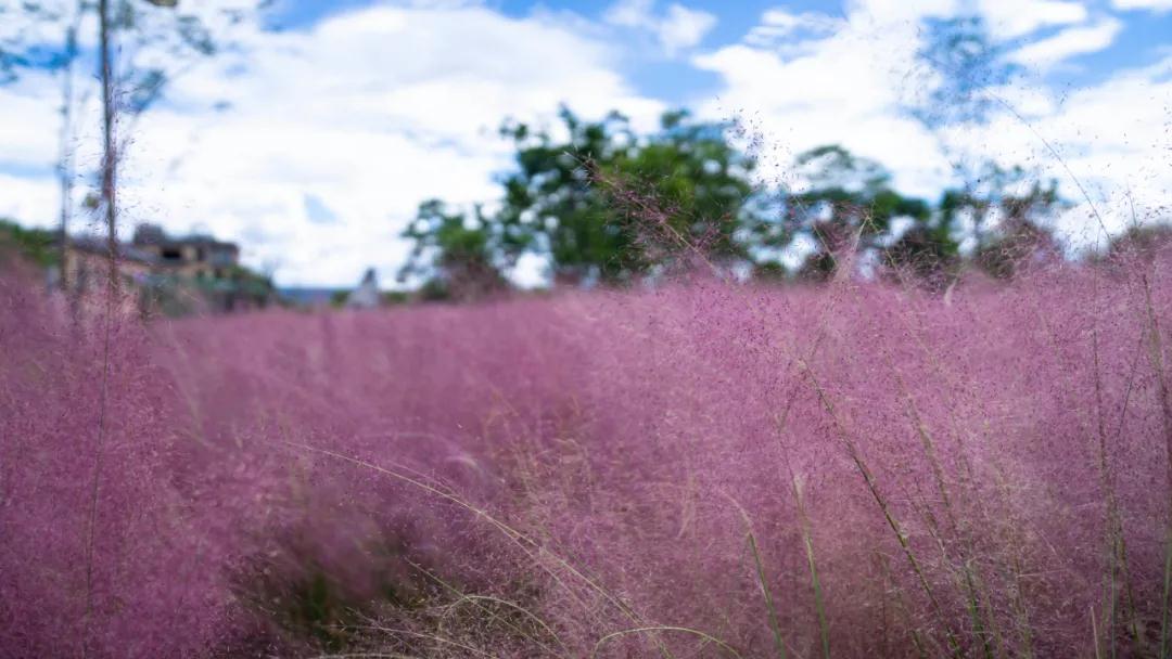 半身高的粉黛亂子草縈繞身側