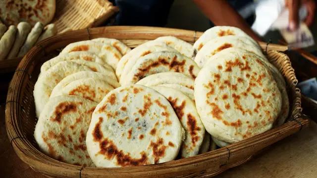 云南官渡的地方特產(chǎn),由面烘制而成,內(nèi)含芝麻、花生、核桃等磨細果仁,與白糖混合為餡,松軟香甜。