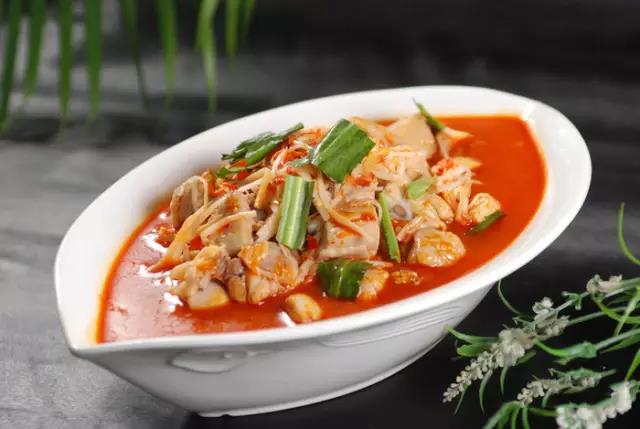 這是一道傣族傳統(tǒng)名菜,用特質(zhì)的酸筍配上鮮嫩的雞肉熬成湯,加上傣家特有的香料香茅草,酸辣開胃。